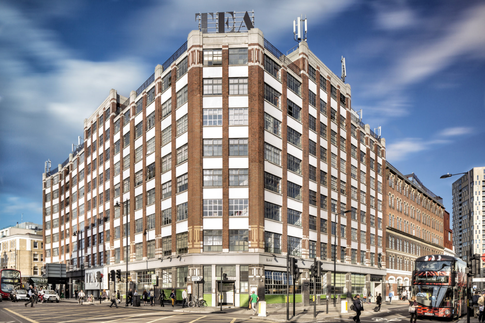 A robust and striking former warehouse in a prime location on Shoreditch High Street, the Tea Building is an iconic local landmark.
